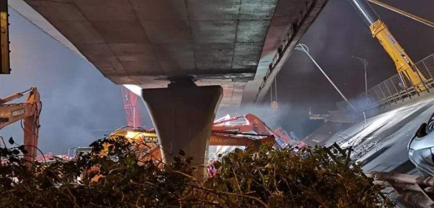 1、獨(dú)柱墩橋梁在超載車輛偏心作用及恒載偏心作用下,橋臺(tái)(或連接墩)雙支點(diǎn)位置可能存在支座脫空現(xiàn)象、橋墩單支點(diǎn)位置不能為上部梁體提供橫向約束,導(dǎo)致上部梁體變形過大,從而形成機(jī)動(dòng)體系,造成橋梁上部結(jié)構(gòu)突然整體側(cè)翻、傾覆。該類型的破壞形式屬于無預(yù)兆的脆性破壞,事先無明顯預(yù)兆,會(huì)發(fā)生橋塌、車毀人亡的嚴(yán)重事故。